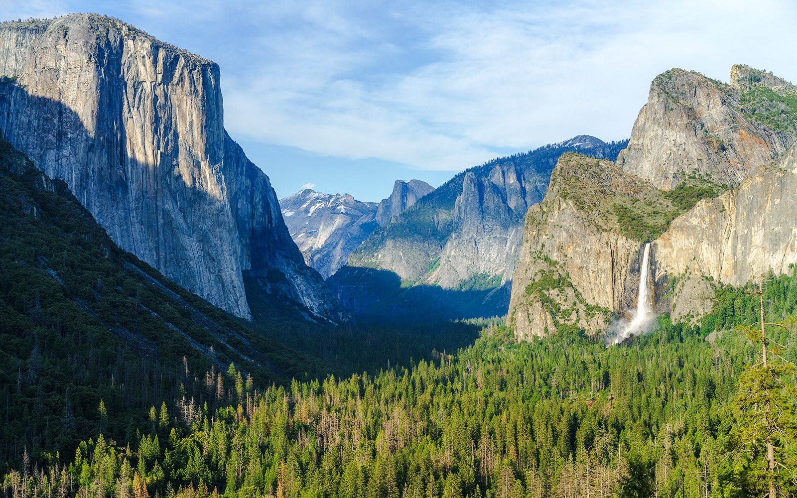 Situado no Parque Nacional de Yosemite, nas montanhas da Sierra Nevada, o Vale de Yosemite é uma paisagem esculpida por geleiras, conhecida por suas paredes íngremes de granito, cachoeiras sazonais e prados abertos. É aqui que você vê de perto pontos turísticos como El Capitan e Half Dome, não como mirantes distantes, mas como presenças imponentes que marcam o fundo do vale. A experiência combina pontos turísticos de fácil acesso com caminhadas curtas e trilhas mais longas, tornando-a um dos cenários naturais mais acessíveis e, ao mesmo tempo, visualmente impressionantes dos Estados Unidos.
